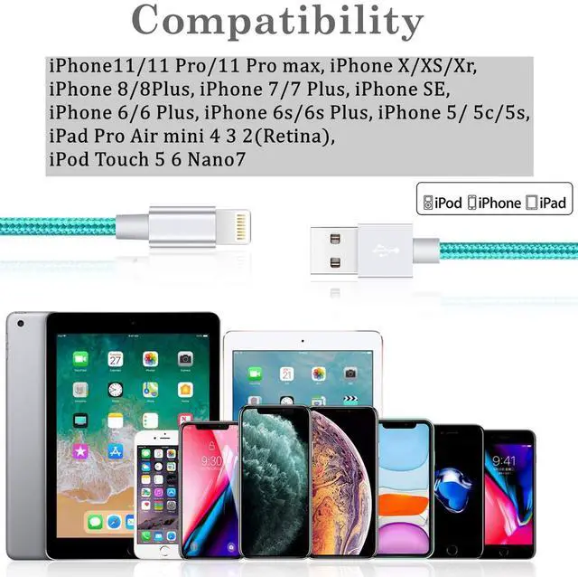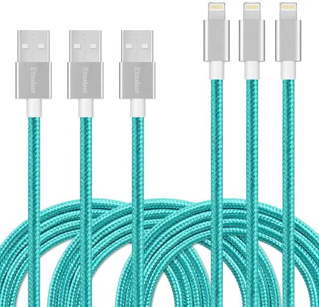 The nylon braided iPhone charging cable has the unique teal color and looks chic. It fits your IOS devices of any color and shape.