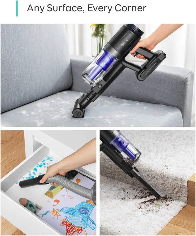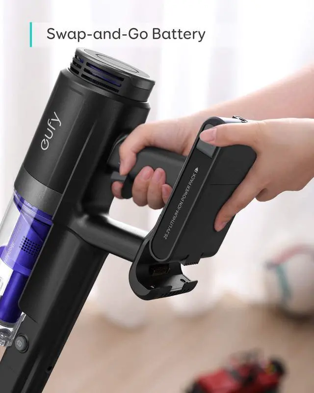 Long-lasting detachable battery included for up to 40 minutes of cleaning time.