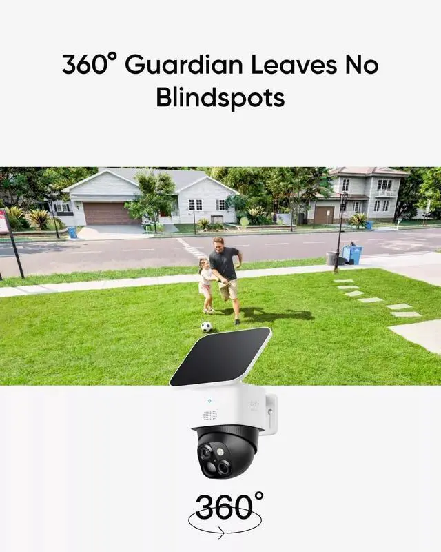 Say goodbye to blind spots with full home coverage. Enjoy 360° surveillance, check your front porch, monitor your backyard, and keep an eye on the driveway with ease.