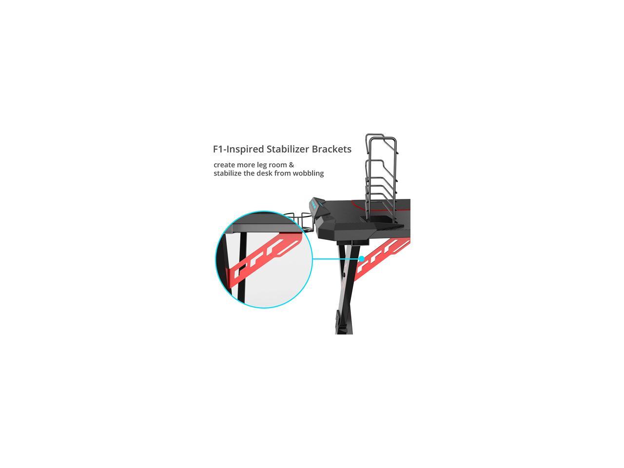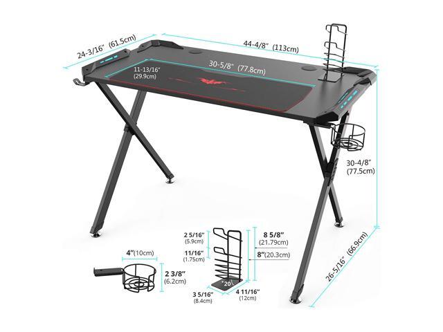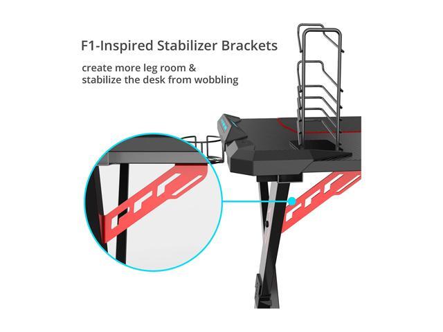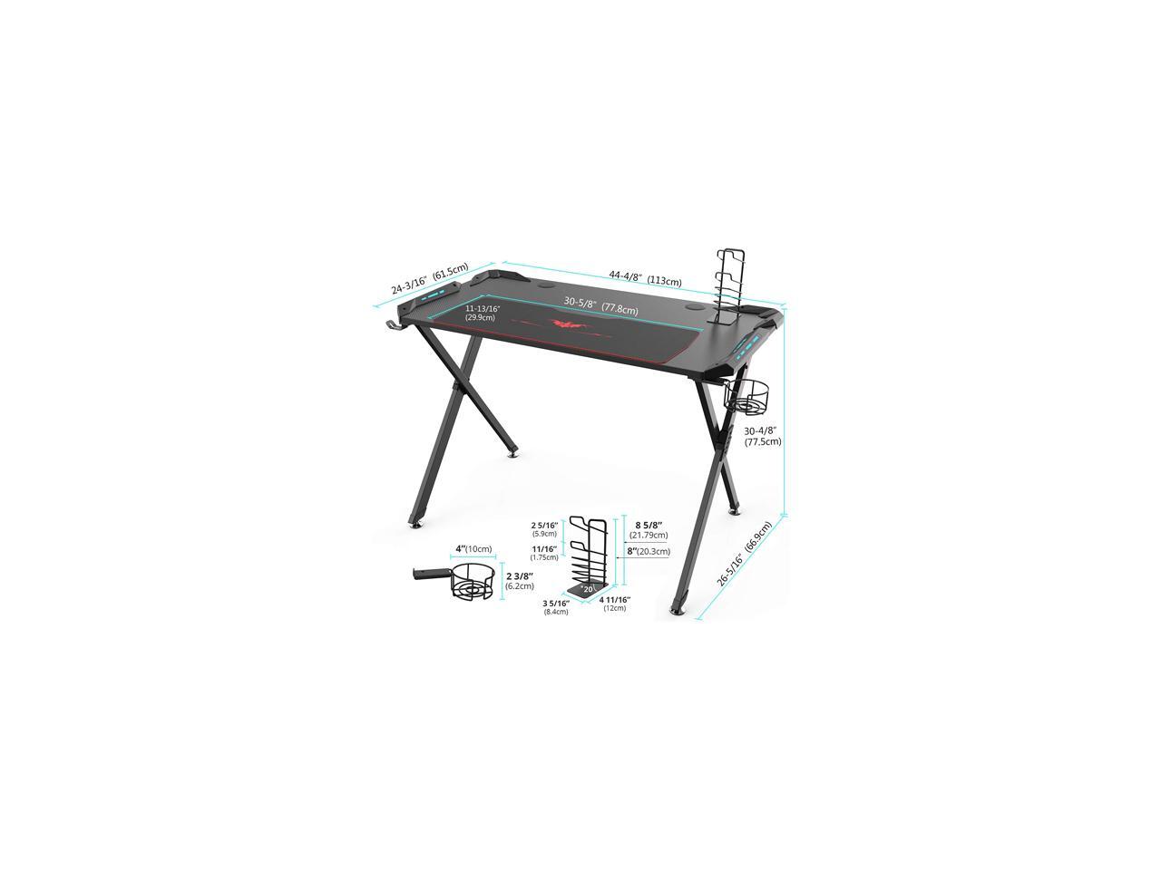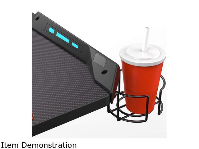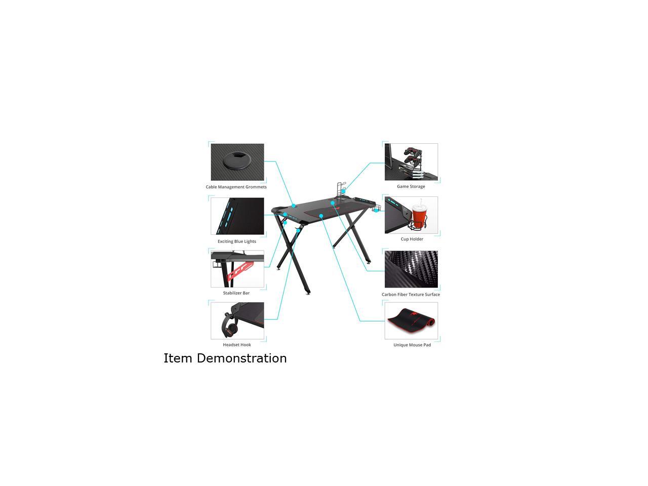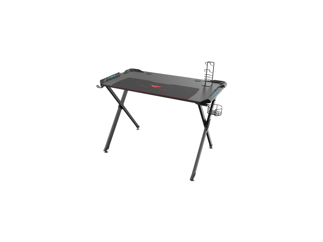 Eureka Ergonomic X1-S Gaming Computer Desk with Led Lights, Large Carbon Fiber Surface Cup Holder and Headphone Hook - Black