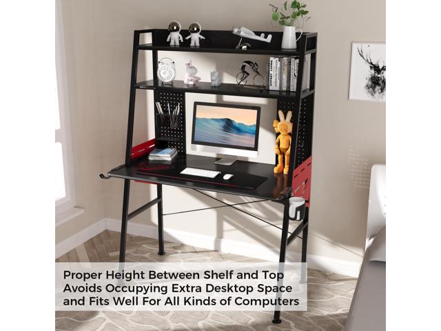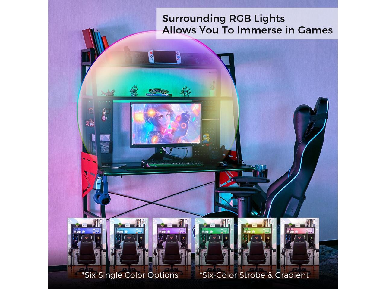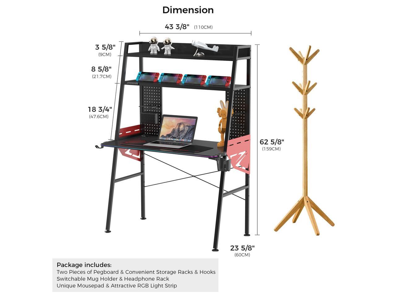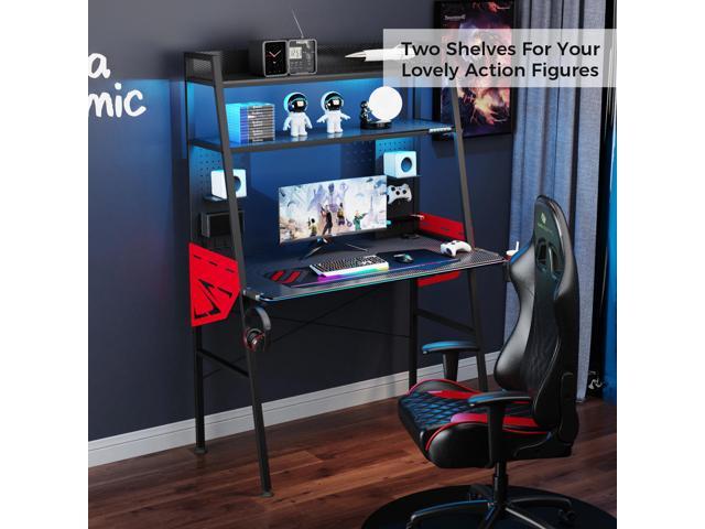 EUREKA ERGONOMIC 43 Inch Black RGB LED Gaming Ladder Desk, Home Office Computer Desks for Small Spaces with 2 Tier Storage Book Shelves Pegboard Organizer with Accessories Cup Holder Headphone Hook