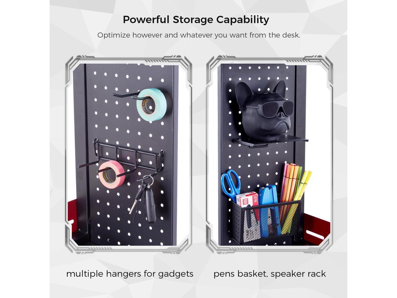- Powerful Storage Capability – We know how important your collectibles means to you, that’s why Eureka Gaming devotes to create a desk with multiple storage areas. Organize however your want, wherever you want.