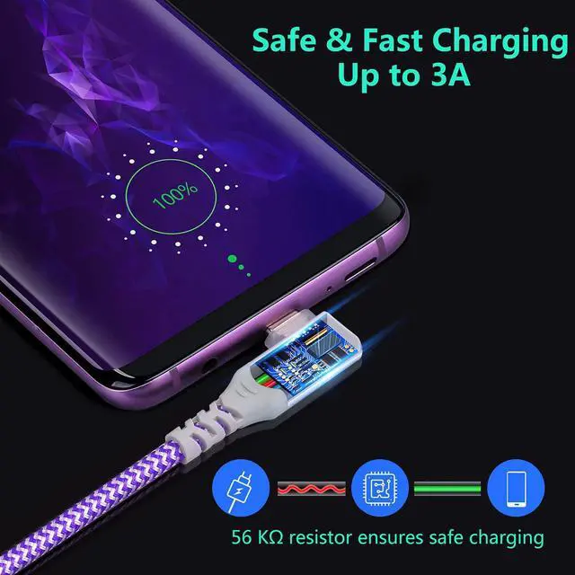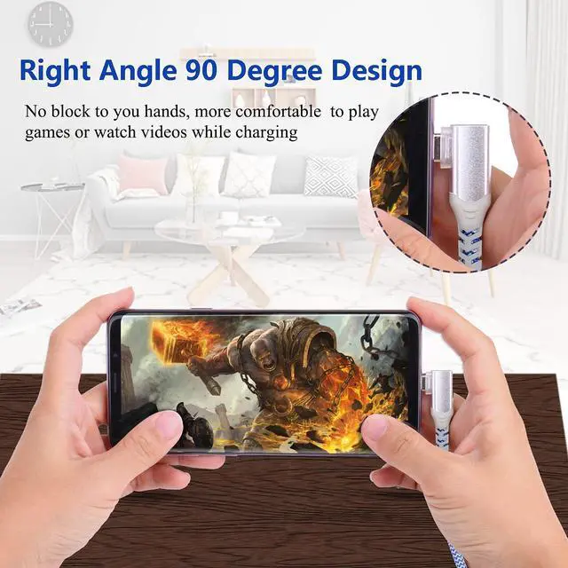 Braided USB C 90 degree cable design enable you to use your phone more comfortable,especially watching videos or playing games while your are charging.