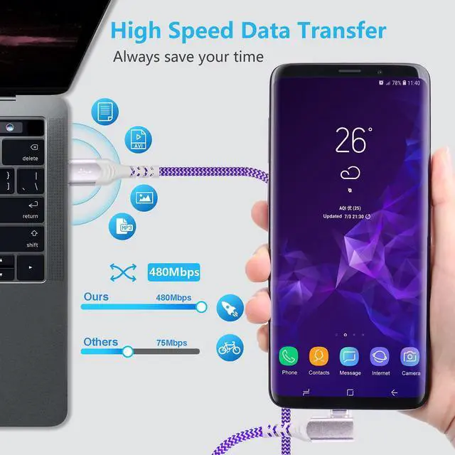 Quick charge your USB-C devices with a compatible Quick Charge 2.0/3.0 charger or Adaptive Fast Charger. Transfer data( Music, movies or photos) between your USB-C phones, tablets and laptops in seconds, save lots of time.