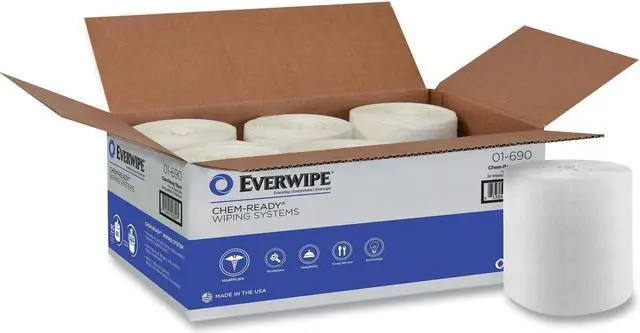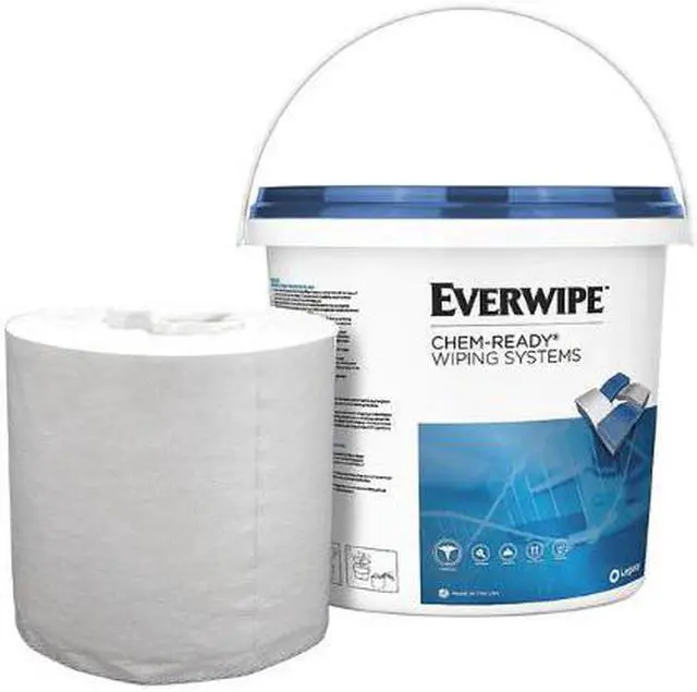 Dry Wipe Roll, Wipe Type Bucket System, Dispenser Bucket, Product Series Chem-Ready, Absorbency Level Heavy, Wet Strength Level Best, White, Minimum Cleanroom Standards None, Hydro-entangled (HEF), Lint Level Low Lint, Roll Length 90 ft, Sheet Length 12 in, Sheet Width 10 in, Number of Sheets 90, Ply 1, For Use With Grainger Item Number 60FE74, For Use With Manufacturer Part No. CR-BKT-5-PR, Package Quantity 6