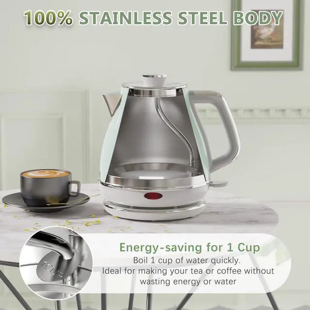 The kettle is fitted with a 1 -cup super fast boiling feature, fiLL the water till 1 cup flag position,can save boiling time and energy massively.
