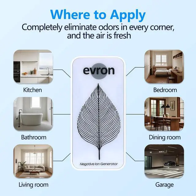 Elevate your indoor environment with the Evron Negative Ion Generator, a filterless air ionizer offering a potent blend of efficiency and convenience. By emitting up to 20 million negative ions per second, this compact unit helps refresh the atmosphere in rooms up to 400 sq ft. Whether placed in a bedroom, office, or living area, it quietly operates in the background to enhance your surroundings. Thanks to its ultra-thin designjust 9.5cm × 4.5cm × 1.7cmand foldable plug, the Evron Ionizer easily fits into tight spaces and is equally simple to pack for travel. Youll appreciate its near-silent functionality and dim amber indicator light, which creates a subtle glow that wont interrupt rest or focus. Best of all, its entirely filterless, removing the hassle of replacements and extra maintenance. With an impressively low power draw of only 0.5W, the Evron Ionizer can run continuously without causing noticeable changes in your energy bill. If youre looking to freshen your indoor space in a sleek, straightforward way, the Evron Negative Ion Generator delivers reliability, portability, and simplicityall in one modern design.