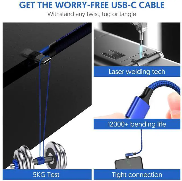 ![Alt view image 4 of 7 - USB C Cable 90 Degree Right Angle[2Pack 10FT], USB A to Type C Nylon Braided Fast Charging Cable for Samsung Galaxy S22 Ultra/S22+/S22/S21, Note 20+/20, PS5, Google Pixel, iPad Pro(Not for 2021)](https://c1.neweggimages.com/productimage/nb640/AH9BD210421RY4ZX.jpg)