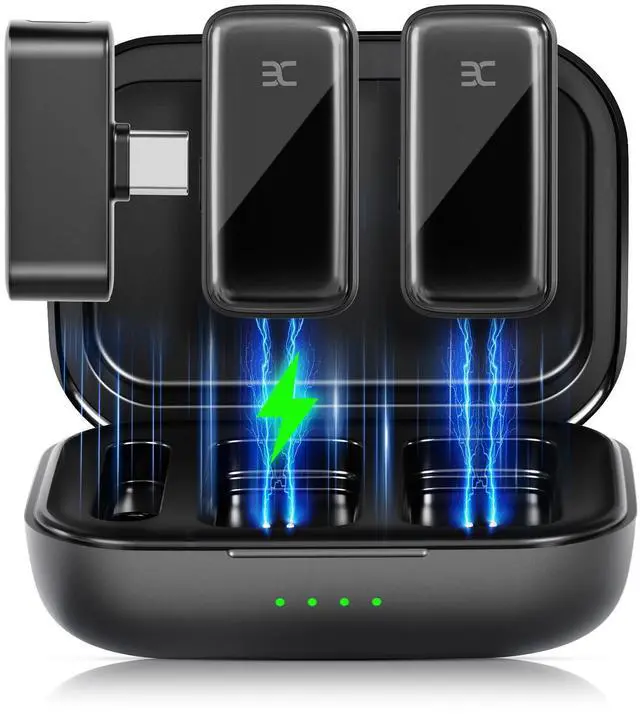 Wireless Lavalier Microphone System, Dual Clip-On Mics + Charging Case, 164ft Range Plug-and-Play for iPhone/Android, Advanced Noise Reduction, 48H Runtime-Video Recording, TikTok, YouTube, Black