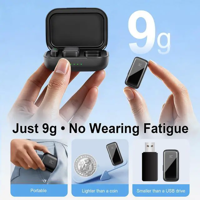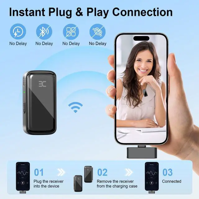 True Plug & PlayNo app or pairing headache. Plug the receiver into your phone (Lightning or USB-C adapter included), clip the lav, power on - they auto-pair in seconds for fast setups.