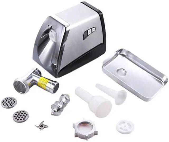 | Features | 575W reversible motor makes mincing meat quick and easy Can grind up to 2 lbs. of meat per minute Sharp grinding plates mince meat to a smooth consistency Can be used to make either coarse-ground or fine-ground meats Stainless steel construction makes the unit easy to clean and keep clean |