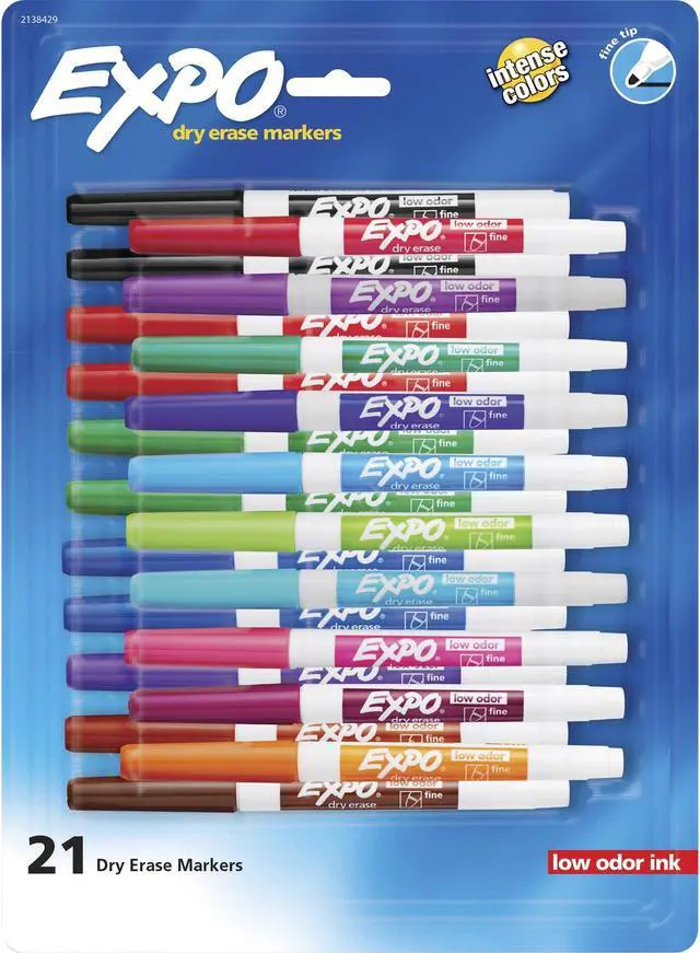 Expo Low-Odor Dry Erase Fine Tip Markers - Fine Marker Point - Assorted Alcohol Based Ink - 21 Pack 2138429