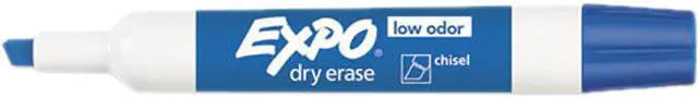 Dry Erase Marker Set, Chisel, Marker Cap Capped, Barrel Type Standard, Low Odor Low Odor, Marker Ink Color Blue, Marker Set Ink Colors (12) Blue, Number of Markers 12, Standards ASTM D-4236, Includes Not Applicable, Package Quantity 12. This item has been restricted from sale in the following state (s): []