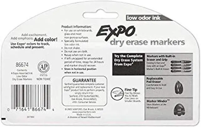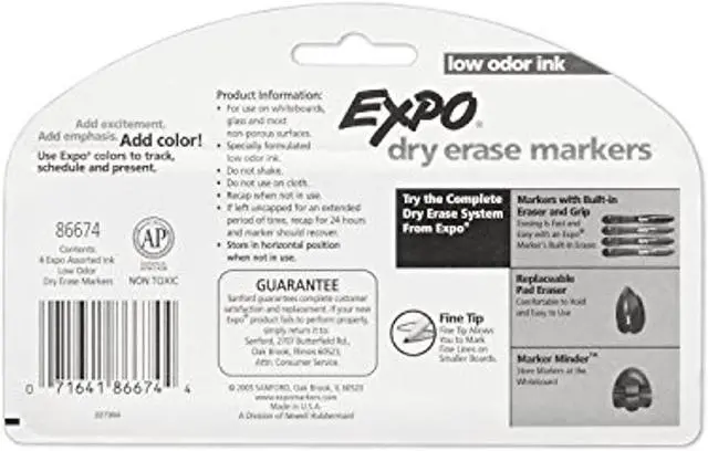 Create easy to read markings with these Expo low-odor, fine point, dry erase markers.