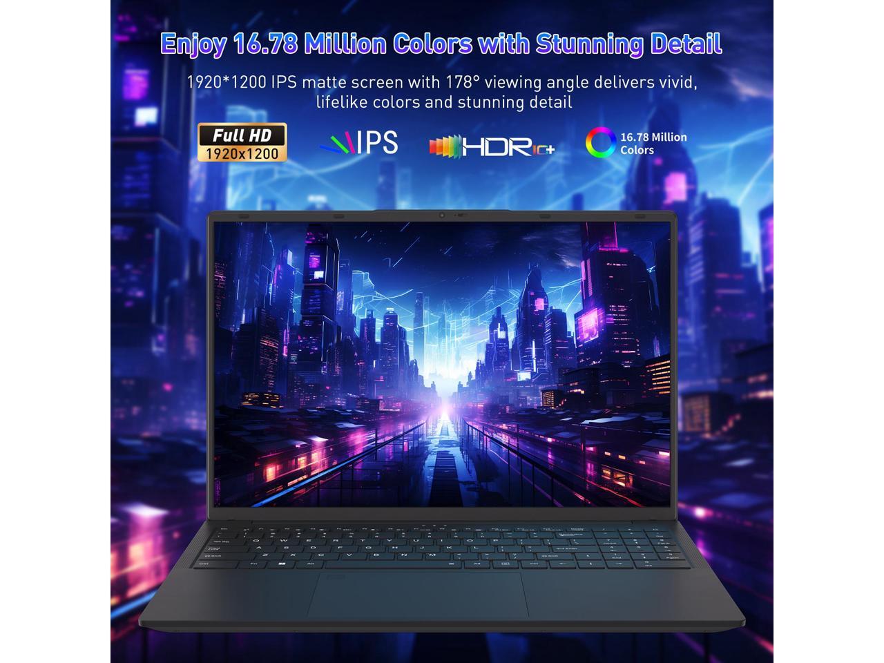 - Bright 16" IPS Screen for All Kinds of Use:The 16-inch 1920*1200 IPS screen shows sharp images. It's perfect for watching TV shows at home, editing photos as a hobby, or taking part in online classes in your dorm room.