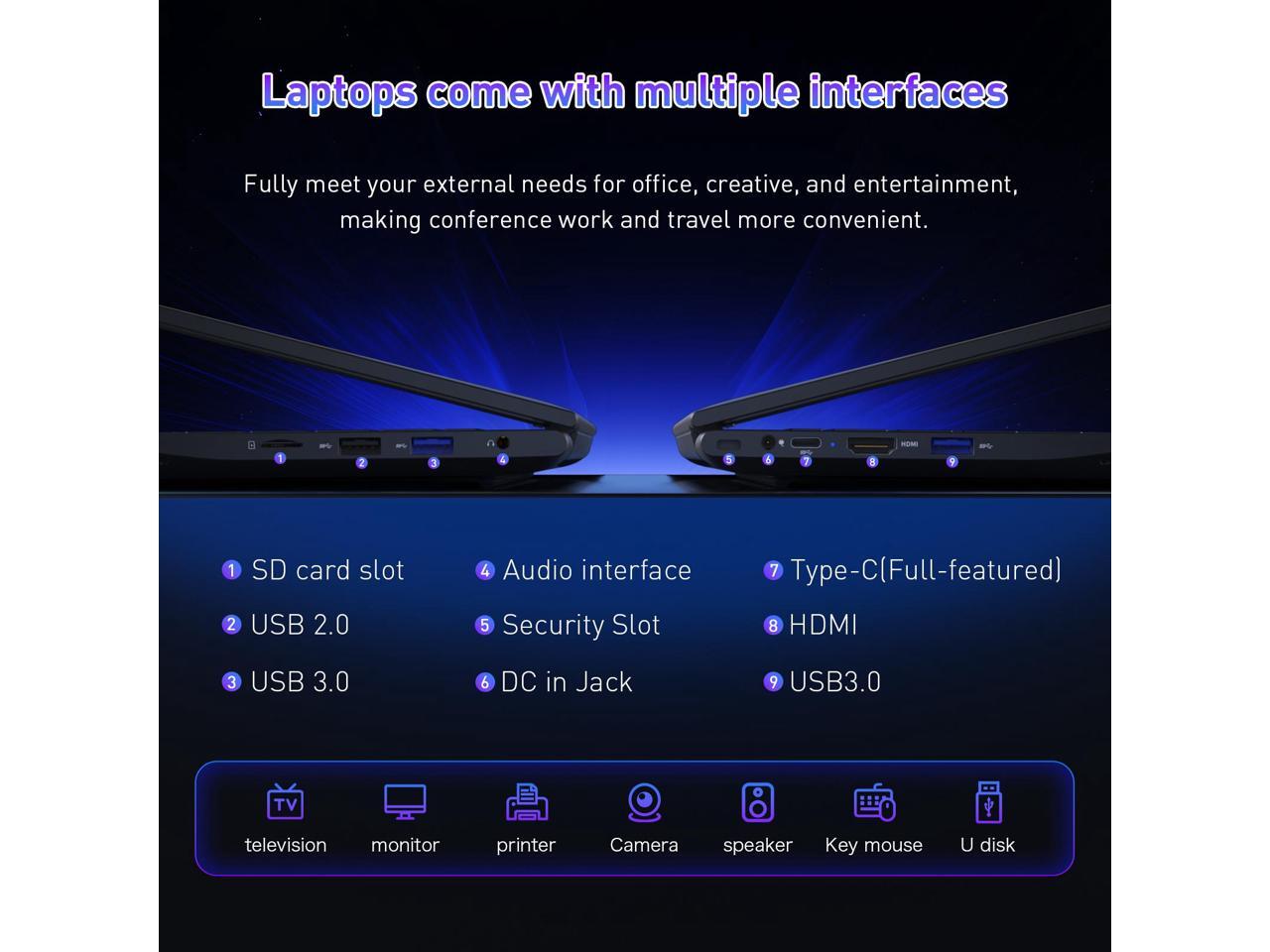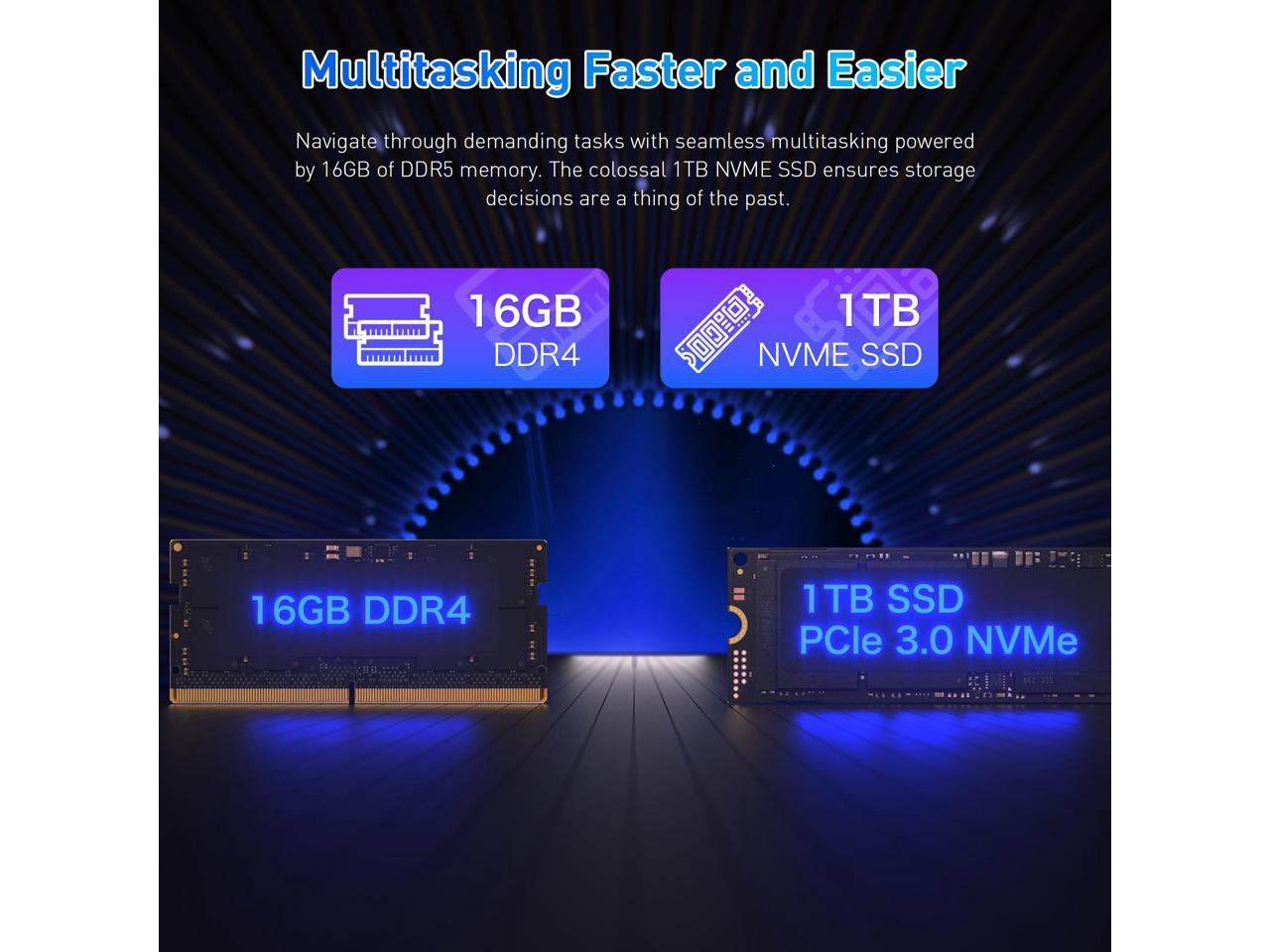 - Plenty of Storage and Easy to Connect:A 1TB M.2 NVMe SSD can hold lots of files. And with WiFi 6, Bluetooth 5.3, and ports like USB 3.0, TYPE-C, and HDMI, you can connect external drives for group projects or stream to a TV for family movie nights.
