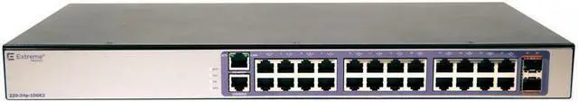 220 Series 24 port 10/100/1000BASE-T PoE+ (185W), 2 10GbE unpopulated SFP+ ports, 1 Fixed AC PSU, 1 RPS port, L2 Switching with RIP and Static Routes, 1 country-specific power cord*