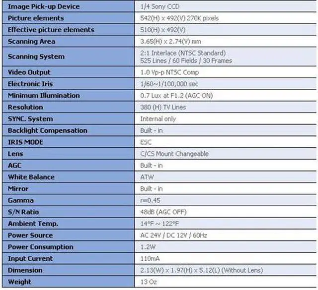 Have you searched high and low for an affordable camera? The TP-270 will not disappoint you. The 330 TV lines of resolution will ensure you to have a sharp eye on your surveillance needs. And with a low light rating of 1.0 lux, the TP-270 will work great even with less than perfect lighting conditions. And at such an affordable price, the TP-270 will ensure that you stay within your budget for your installation needs.