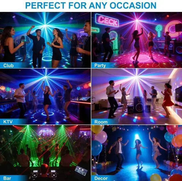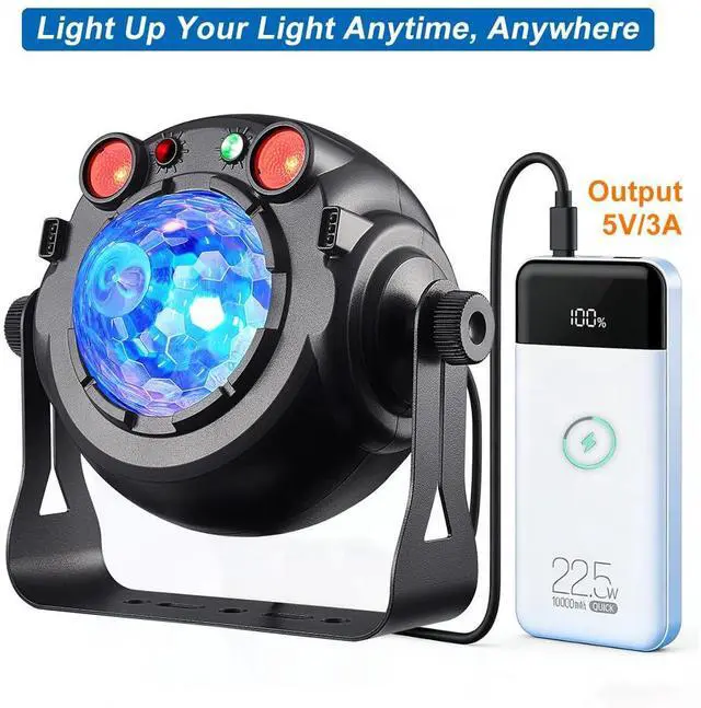 Versatile for Any OccasionWith its compact design, 360° adjustable heads, and versatile 5-in-1 functions, it's the ideal lighting solution for parties, clubs, weddings, KTV, holiday decorations (like Christmas and Halloween), and more.