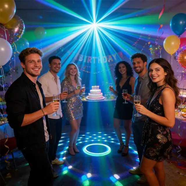 Bright & Wide CoverageEquipped with 5 high-intensity lighting lenses, the party rave light covers up to 600 sq. ft., ensuring a radiant glow for the daily party events. Whether its a cozy home celebration or a lively backyard party, you will be immersed in the wonderful lighting world!