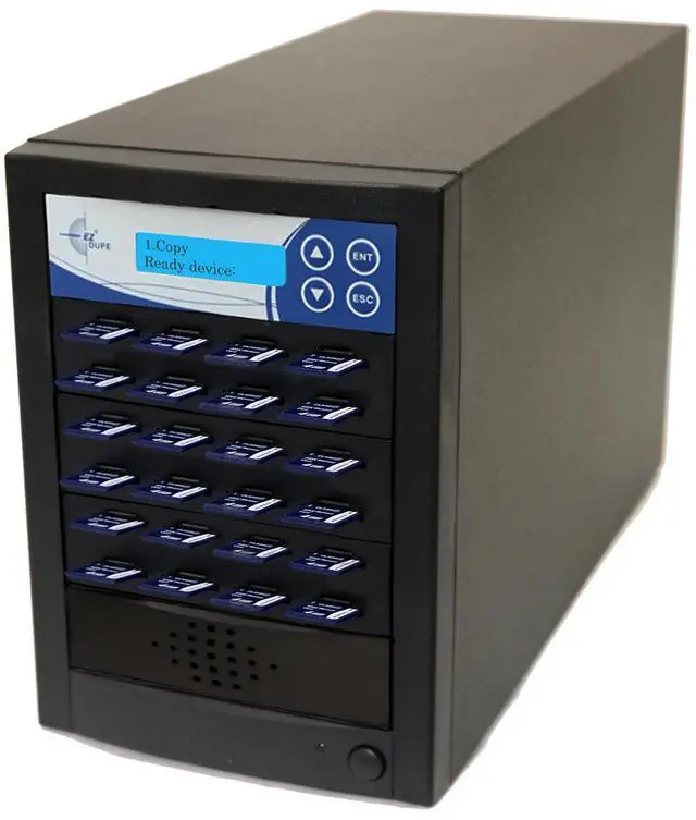 EZ Dupe SD/MicroSD flash media memory card duplicator features user friendly 4-key control panel with LCD, high speed duplication and bit-by-bit Compare function to confirm successful copies.