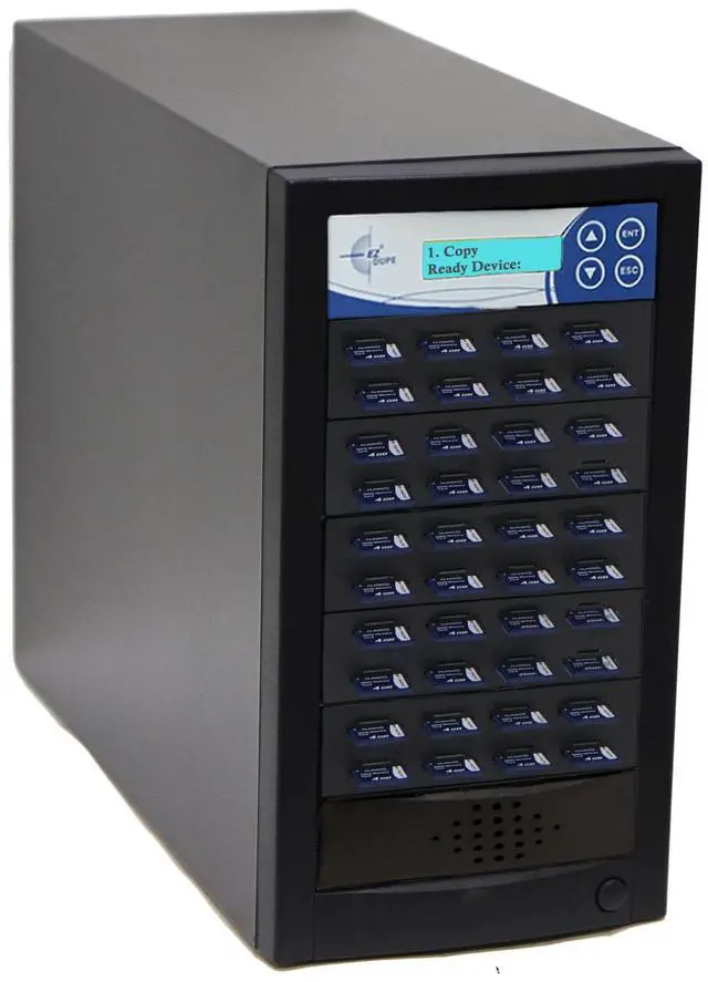 EZ Dupe SD/MicroSD flash media memory card duplicator features user friendly 4-key control panel with LCD, high speed duplication and bit-by-bit Compare function to confirm successful copies.
