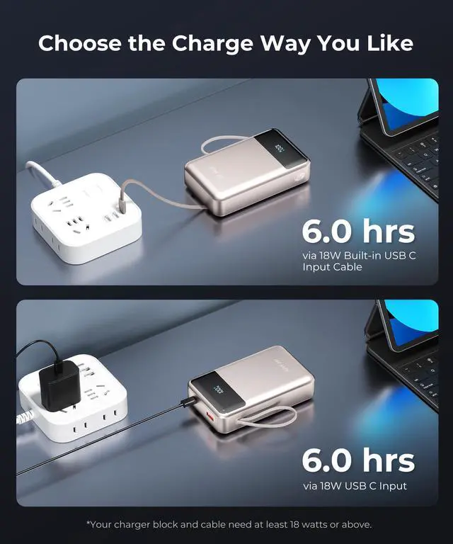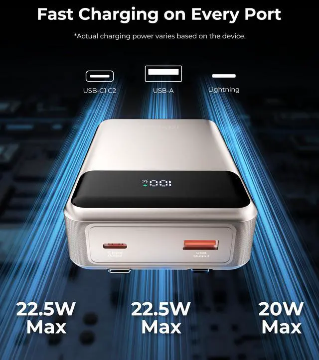 | Special features | Built In Cable, Fast Charging, Lightweight, Digital Display, LED Indicator Lights, Over Charging Protection, Short Circuit Protection, Scratch Resistant, USB-C Input Output |
