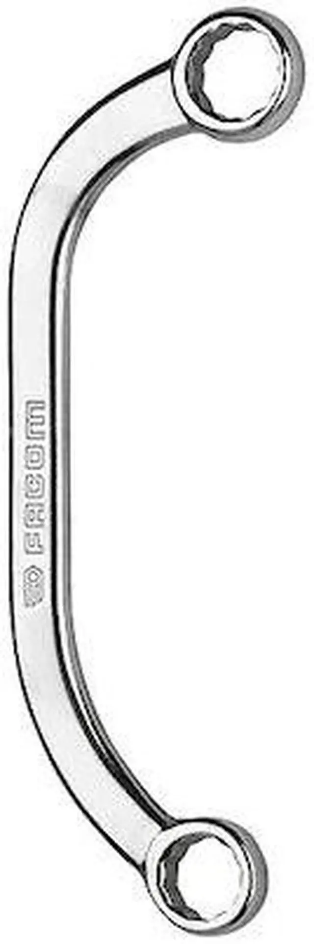 Box End Wrench, Alloy Steel, Satin, Head Size 11 mm, 13 mm, Overall Length 6 1/2 in, 30 Degrees, Head Thickness 5/16 in, Metric, Offset, Not Tether Capable. This item has been restricted from sale in the following state (s): []