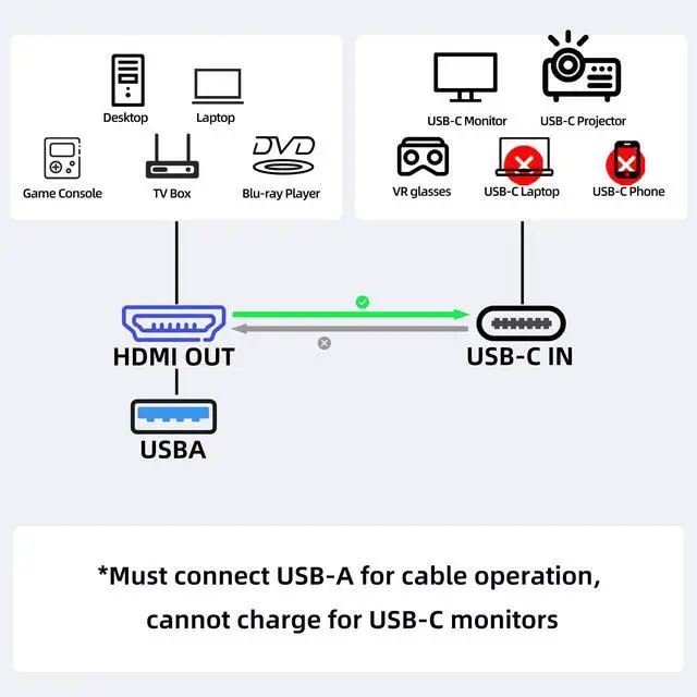 - Only transfer signal from HDMI source to USB-C monitor; For DisplayPort PC/laptop to USB-C monitor, please refer to ASIN B0BW8QKFHK