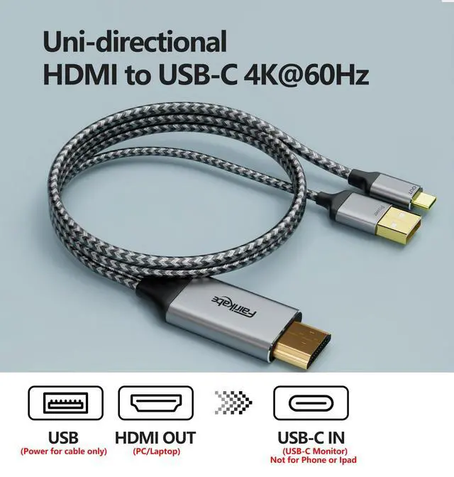 Merchant VideoFairikabe HDMI to USB C cable, add additional USB Type C input monitors and portable monitors to HDMI PC, graphic card, laptop, Xbox, PS5 .**Doesn't work as USB C Phone or Laptop to HDMI monitor and projector** Convenient to extend 2 displays, can be applied for entertainment, working from home etc.