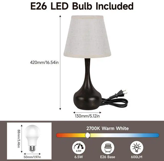 | Product Benefits | Smart touch control with 3-level dimming, energy-saving LED bulb, modern farmhouse design, and versatile placement |