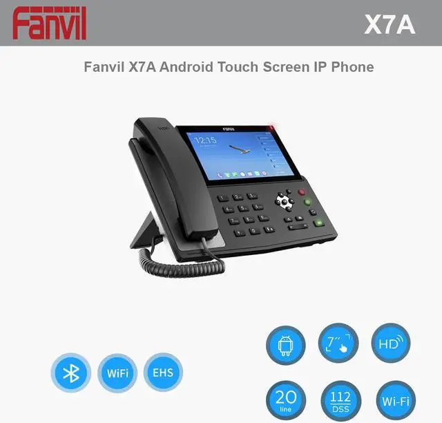 The Fanvil X7A IP Phone runs on the Android 9.0 system versus the Linux system when compared to the Fanvil X7. It differentiates itself in that it features built-in WiFi, has 112 DDS keys as opposed to 127 in the X7 and has aKEY_TAB screen definition of 1024*600 LCD (X7 is 800*480).