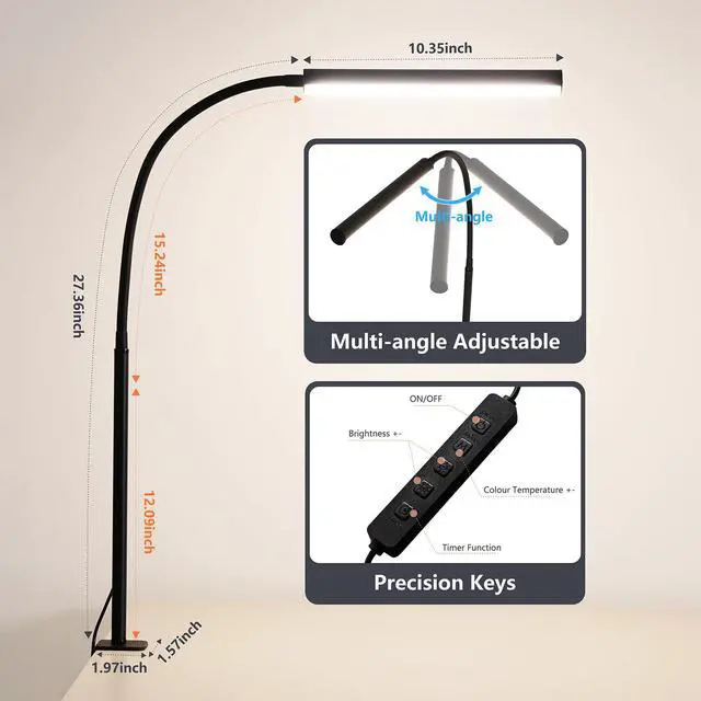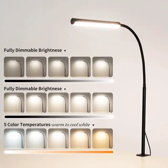 Easy InstallationThe desk lamp features a clamp-on design. Simply tighten the rotating nut to secure it in place. Note: The clamp is suitable for tabletops no thicker than 2.24 inches. If you encounter any issues, please contact us promptly!