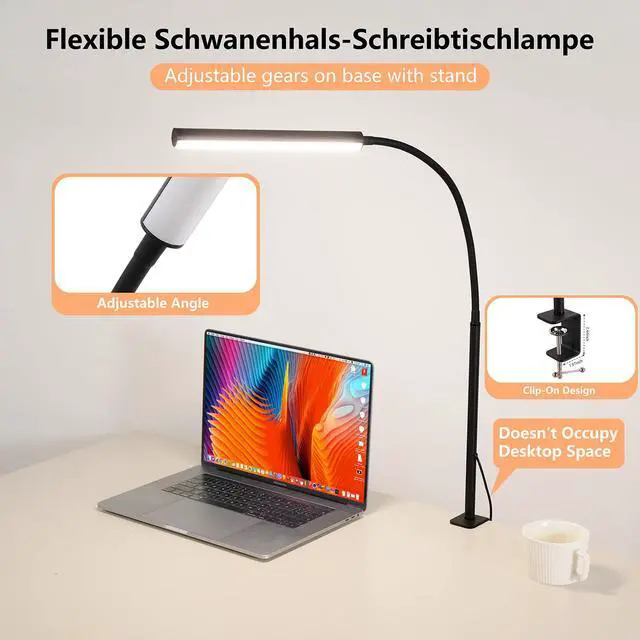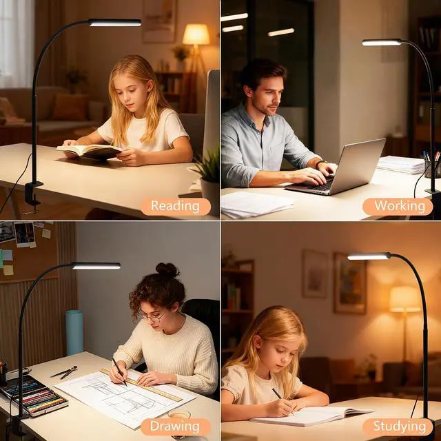 FAPEMIH LED Desk Lamp with Clamp, Eye-Caring Clip on Lights for Home Office