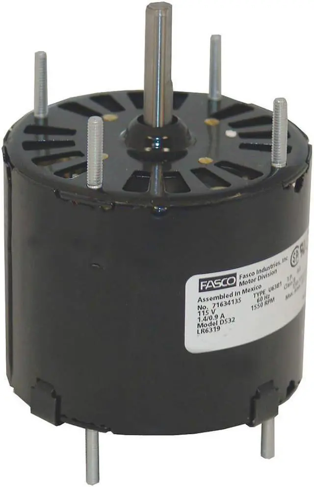 Fan and Blower Motor, Single Phase, Motor Design Shaded Pole, 1/125 hp, 1/30 hp HP, Nameplate RPM 1, 550 RPM, No. of Speeds 2, Voltage 115V AC, 1.4 / 0.9 A Full Load Amps, 3.3 Frame, Output Watts 20 W, 60 Hz Hz, Usable @ 208V Not Usable at 208V, Usable @ 200V Not Usable at 200V, Motor Service Factor 1, Motor Thermal Protection Auto, Ins. Class B, Max. Ambient Temp. 40 Degrees C, Motor Shaft Rotation CWSE, Motor Enclosure Design Open Air Over, Motor Mounting Type Stud, Motor Frame Material Steel.