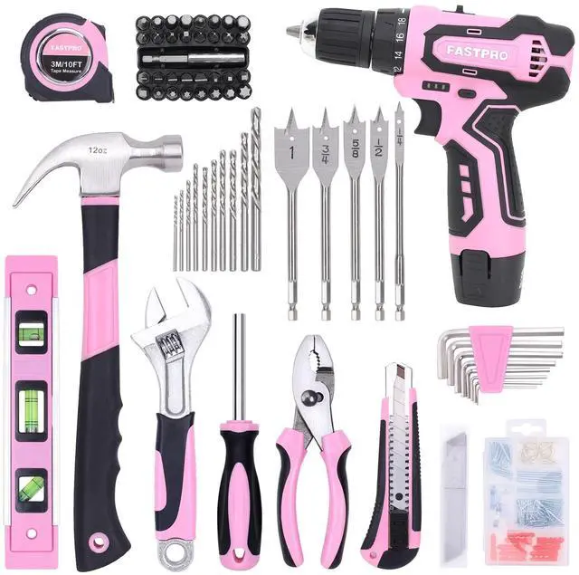 | Included Components | (1) 12V cordless lithium-ion drill driver; (10) HSS6542 drill bits; (5) Woodboring spade drill bits; (32) Screwdriver bits set; (1) 12 0z hammer; (1) 9 Torpedo level; (1) 8 Adjustable wrench; (1) 6 Slip-joint pliers; (1) Screwdriver holder; (1) 3 M / 10 FT tape measure; (1) 18 mm snap off knife; (10) Knife blades; (100) Hardware kit; (8) hex key set; (1) 12 Storage bag |