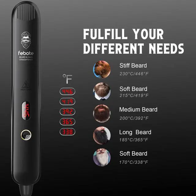To style your beard, glide sections over a comb for 3-5 seconds. If your beard is coarse, use a higher temperature and hold it longer. Repeat this several times for better results, especially if your beard is over 4 inches.