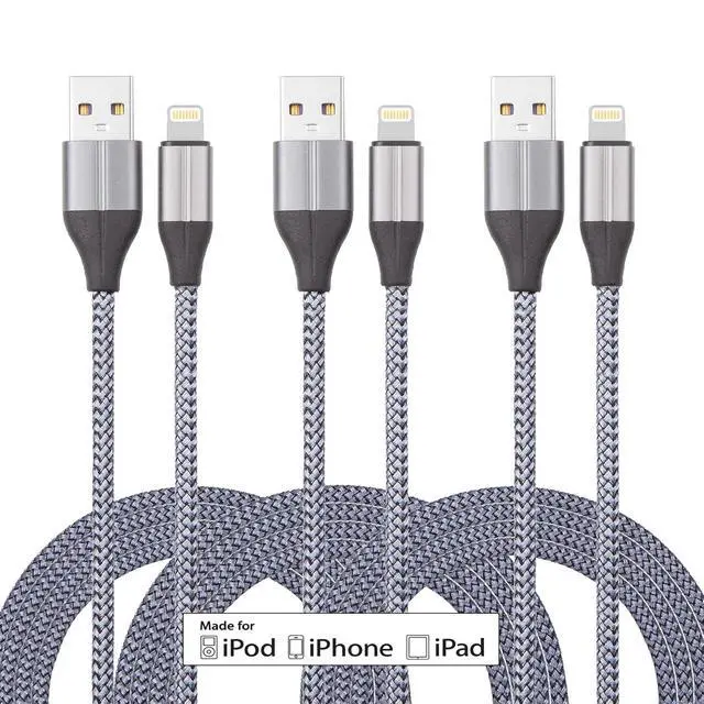 ![Alt view image 2 of 7 - iPhone Charger Lightning Cable (3 Pack 10 Foot), [MFi Certified] 10 Feet Nylon Braided, Compatible with iPhone 14/13/12/11/Pro/X/Xs Max/XR/8 Plus /7 Plus/6/ iPad](https://c1.neweggimages.com/productimage/nb640/C5U4D2603230F35L866.jpg)