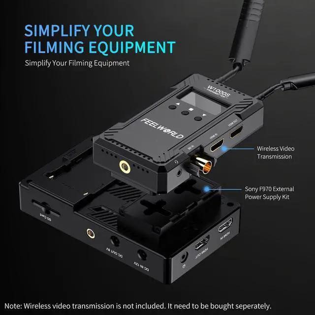 A Sony F970 external install and power kit design is added to the back of the monitor. The external kit can be used to install and install the external equipment, like wireless transmission, LED light, video converter and others that can be powered by a Sony F970 battery. This innovative external power supply design meets the need to power for external wireless transmission, LED light and other equipment, greatly saving the space occupied by the equipment and reducing the weight of filming equipment.