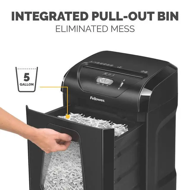 Shreds 14 sheets per pass into 5/32" x 1-9/16" cross-cut particles for enhanced security.