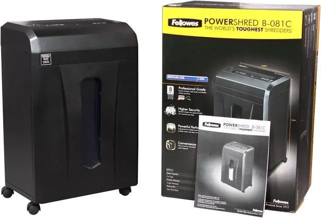 The Fellows B-081C shredder rated Security Level 3 offers a convenient way you can confidently destroy sensitive media thoroughly and safely. Unlike traditional shredders, the B-081C cuts 8 sheets per pass in both vertical and horizontal directions, creating particles that are difficult to reverse engineer. Adding to the overall efficiency is the fact that it could also take credit cards and staples. Ensure your privacy and important information are protected with the Fellows Powershred B-081C shredder!