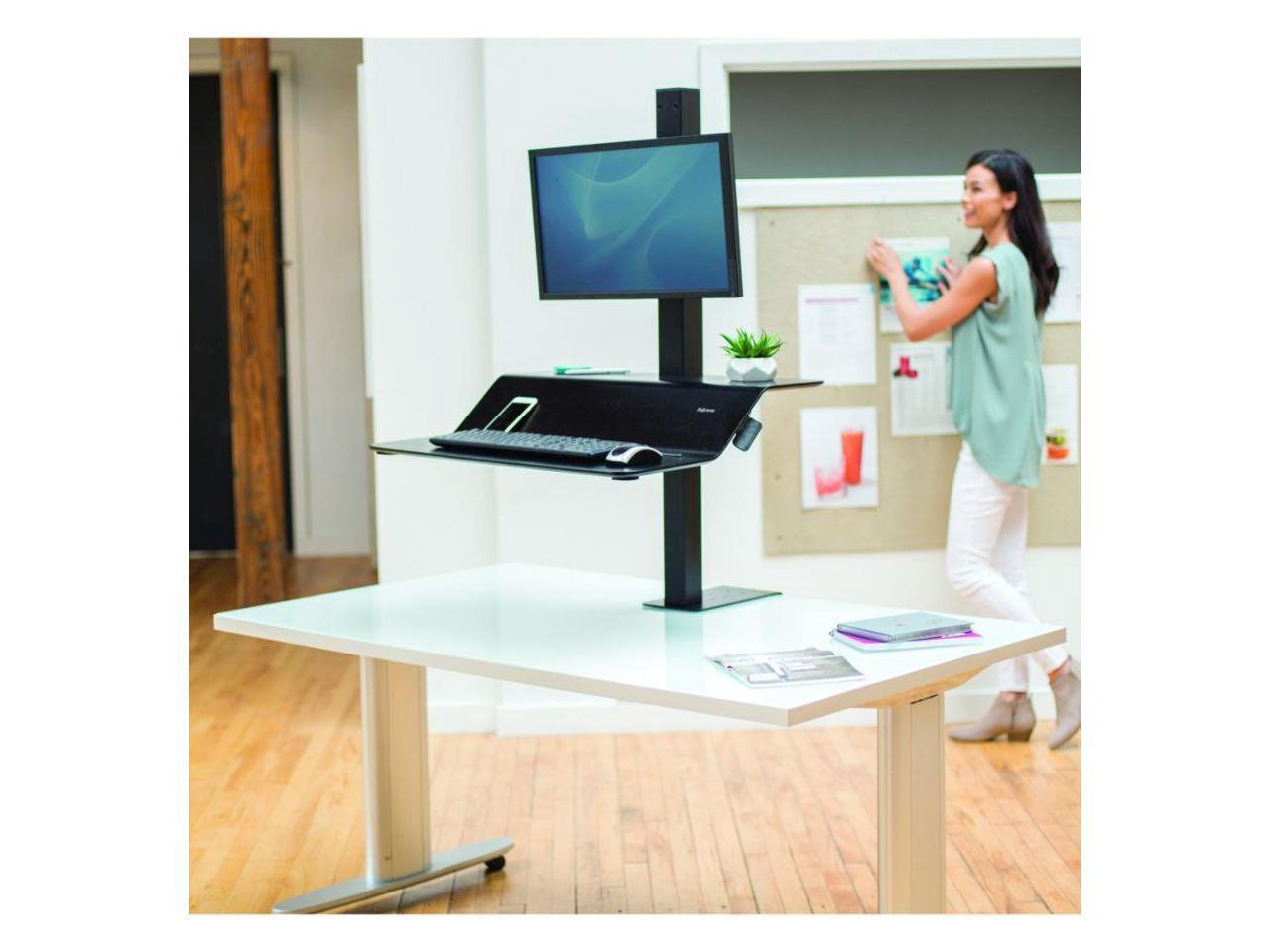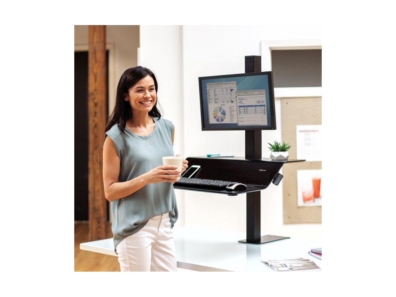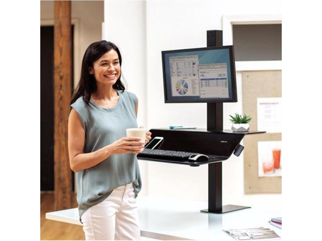 Fellowes 8080101 Lotus Ve Sit-Stand Workstation - Desk Mount For Lcd Display / Keyboard / Mouse - Wood Veneer - Black Ash