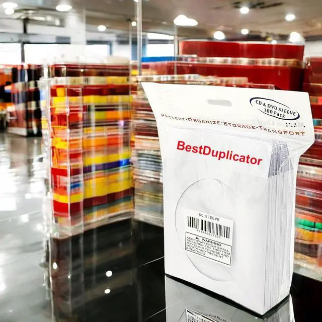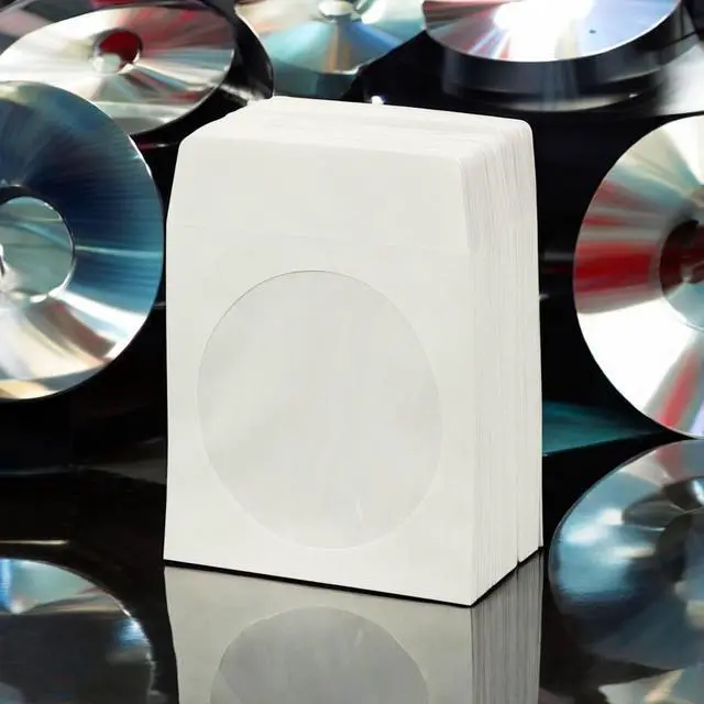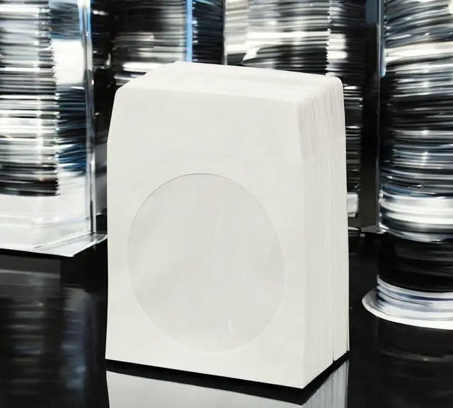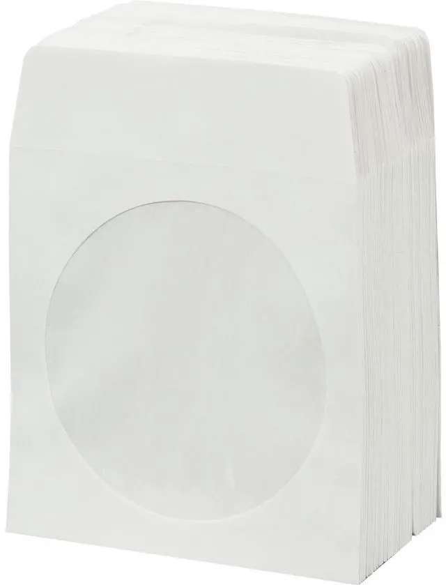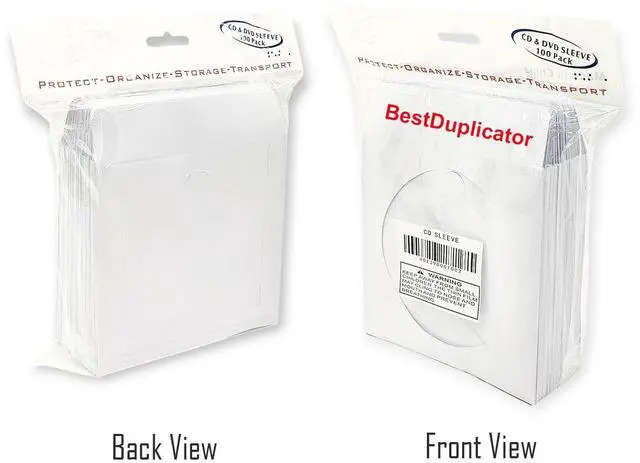 The BestDuplicator Premium Thick White Paper CD/DVD Sleeves provide a convenient and protective solution for storing CDs, DVDs, and Blu-ray discs. Constructed from durable thick paper, these sleeves help protect discs from dust, scratches, and everyday handling damage. The clear window cut-out allows users to easily identify the disc label without removing the disc from the sleeve. Each sleeve includes a protective flap closure that helps keep discs securely inside while adding extra protection during storage or transport. The space-saving design allows you to store large disc collections in a compact format, making these sleeves a practical alternative to bulky jewel cases. Perfect for media archiving, disc duplication, backups, music collections, movies, and data storage, these sleeves offer reliable protection and convenient organization.