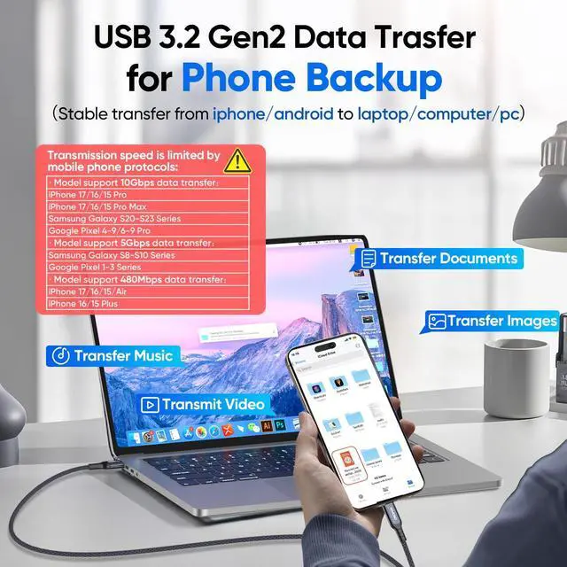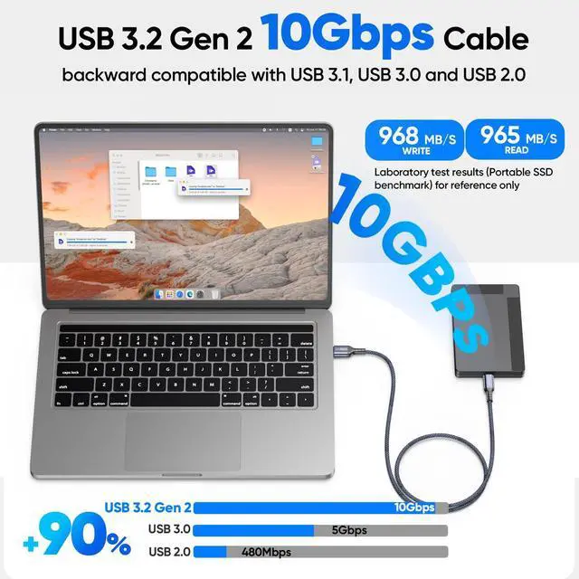 10Gbps data transfer speeds depends on the protocols supported by connected devices. Before use, verify that device ports comply with USB 3.2 Gen2 specifications. If a device only supports USB 2.0, its normal operating speed will be affected.