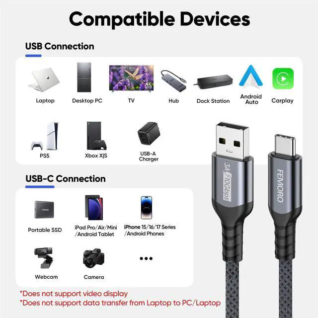 ![]() USB A to USB C Cable 3ft | ![]() USB A to USB C Cable 6ft | ![]() USB A to USB C Cable 10ft | ![]() USB A to USB C Cable 15ft | ![]() USB A to USB C Cable 20ft | ![]() USBC to USBC Cable 1.5ft | ![]() USBC to USBC Cable 3ft |