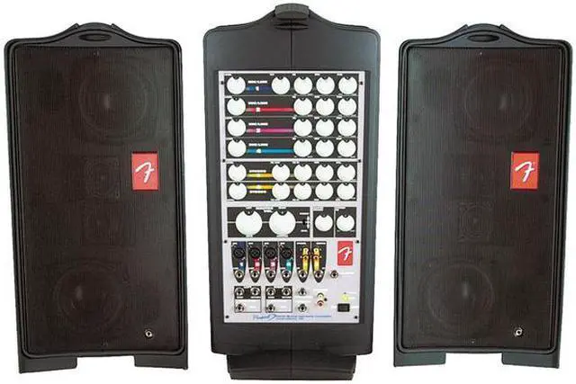 High-performance Self-contained Audio SystemThe Fender PD-250 audio system features a 6-channel mixer, two full-range speakers, two dynamic microphones, and all the cables you need for easy set-up. The self-powered mixer provides a total of 250 watts of high-quality stereo sound, perfect for any situation where quality sound is required.