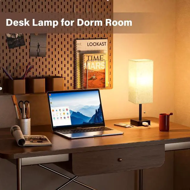 This lamp is very suitable for study in a dorm , it is brighter enough to study, and will not be blinding. Besides with simple and modern design, built-in two-pronged plug for charging, really dorm room essentials for girls/boys