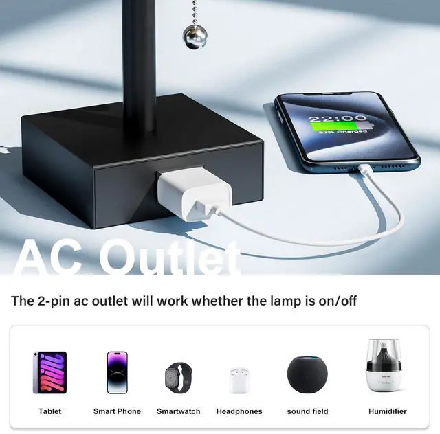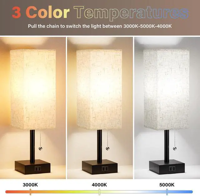 The guest room need the cute lamps. We like being able to choose from the 3 different color temperatures and the ACoutlet charging ports are an added bonus. The quality of the lamp shade is good and construction seems solid.