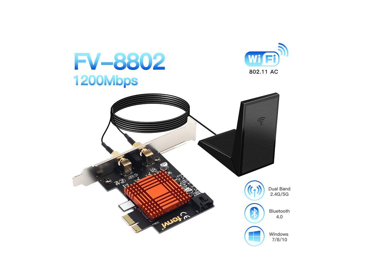 Fenvi FV-8802 AC1200 Wireless Bluetooth Dual Band PCI Express Wi-Fi Adapter, Up to 867Mbps (5Ghz) + 300Mbps (2.4Ghz), with 802.11ac Intel Wifi Card,Directional Antennna, For Desktop PC, Windows 7/8/10