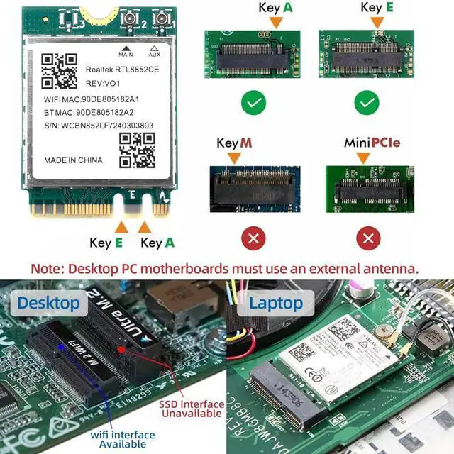WiFi 6E + BT 5.3Realtek RTL8852CE Supports WiFi 6E and Bluetooth 5.3